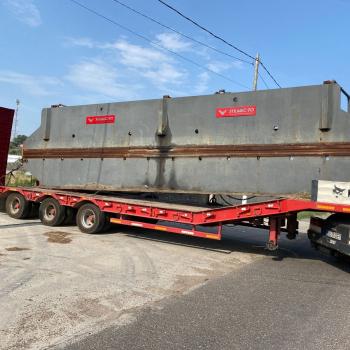 Pressa idraulica con una pressione di 90 tonnellate e una lunghezza di lavoro di 10 metri.La macchina è in ottime condizioni meccaniche, ma necessita di riprogrammazione del software, poiché ha perso la memoria.