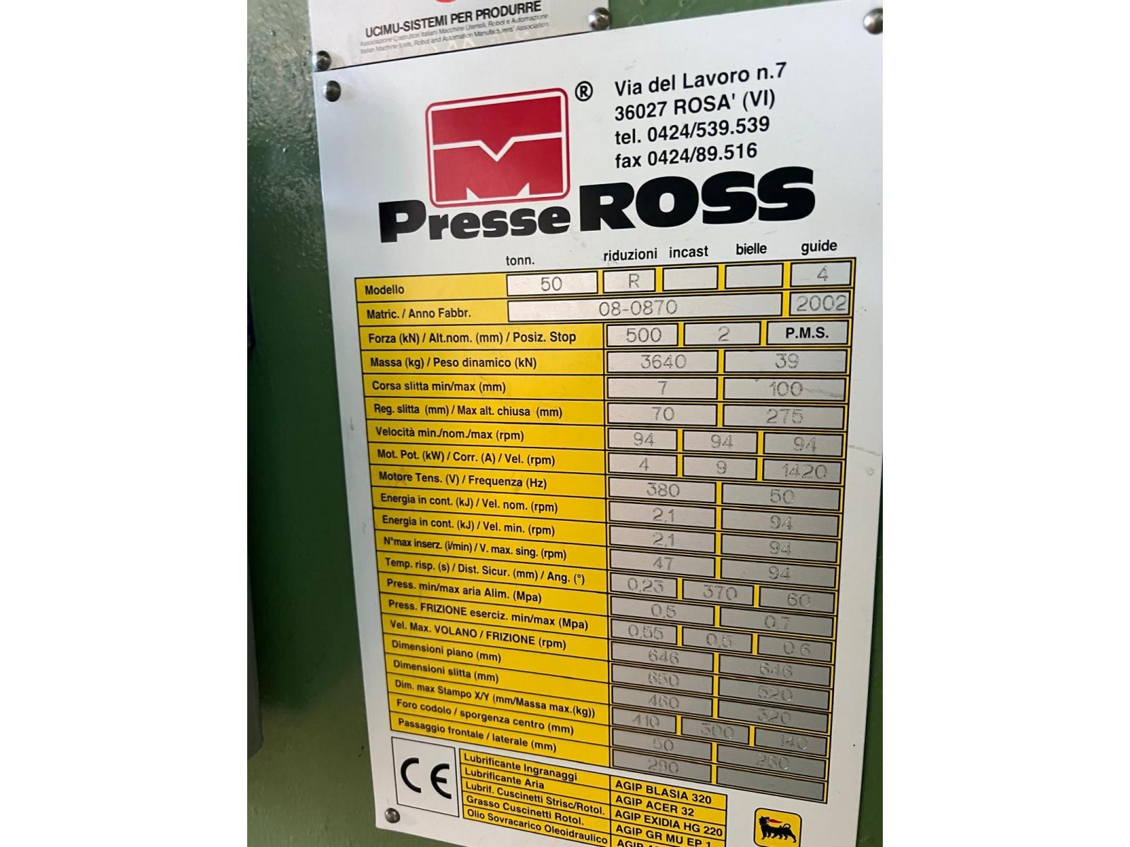 PRESSA MECCANICA ROSS 50 R 4MATRICOLA 08-0870 ANNO 2002