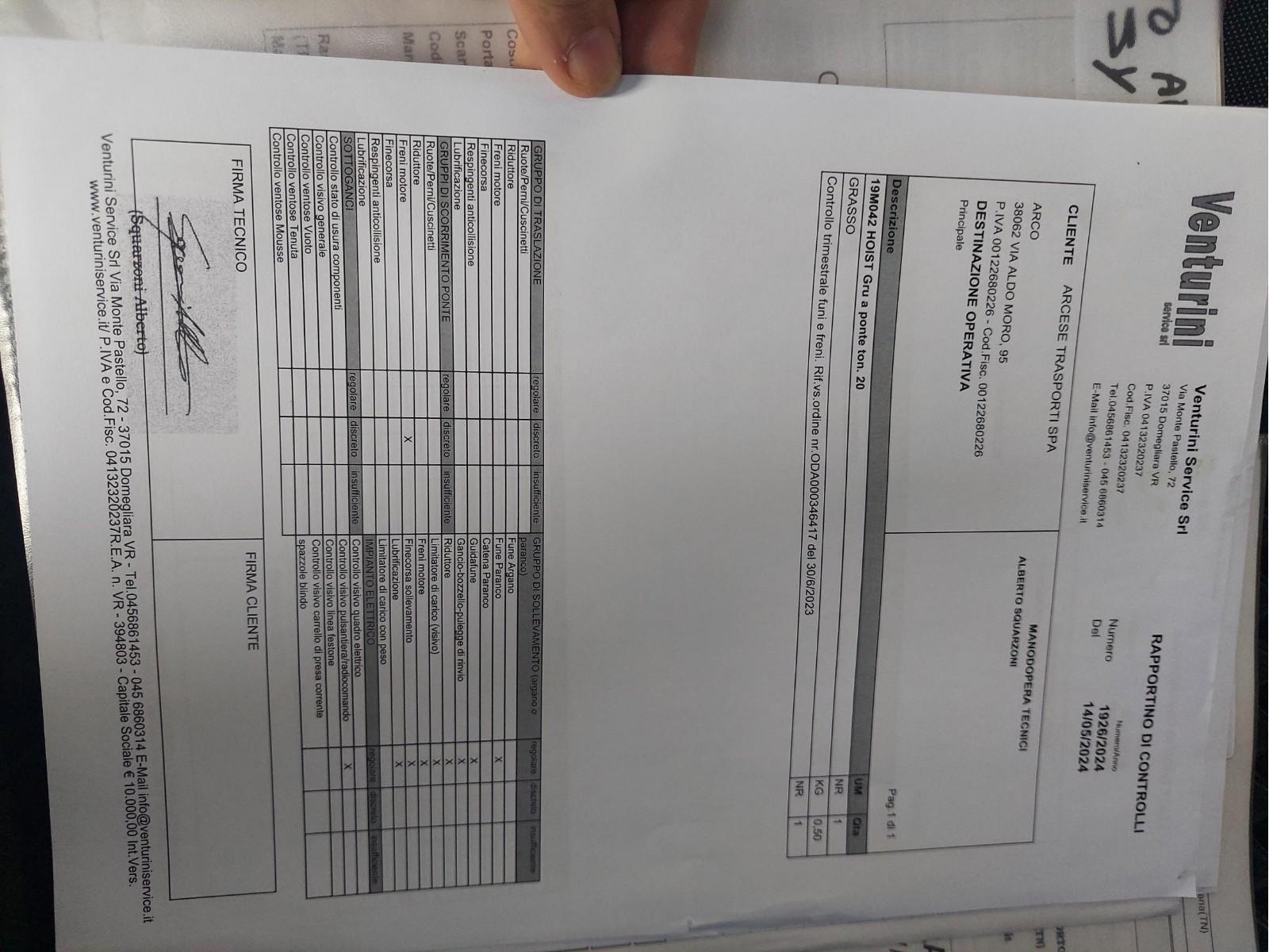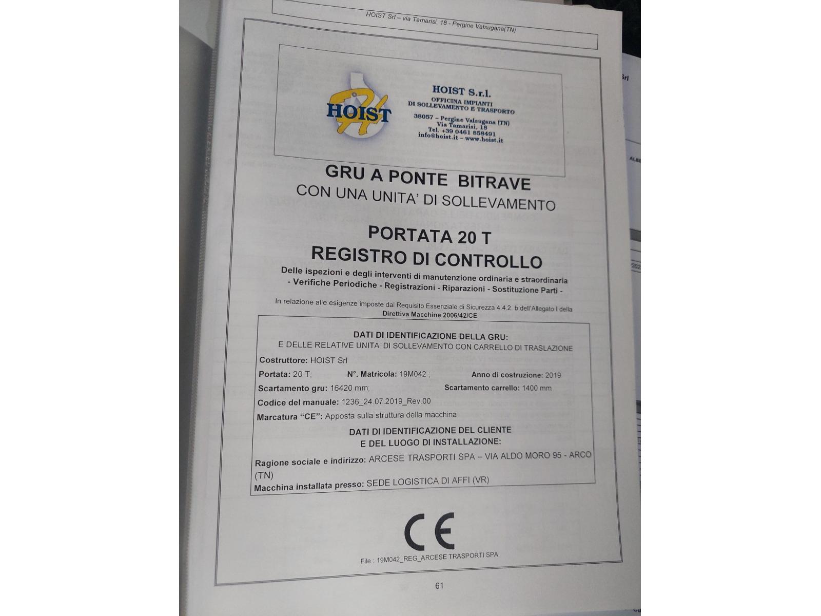 02 CARRIPONTE BITRAVE HOIST 20 TON SCARTAMENTO 16200 MM codice prodotto: 33788